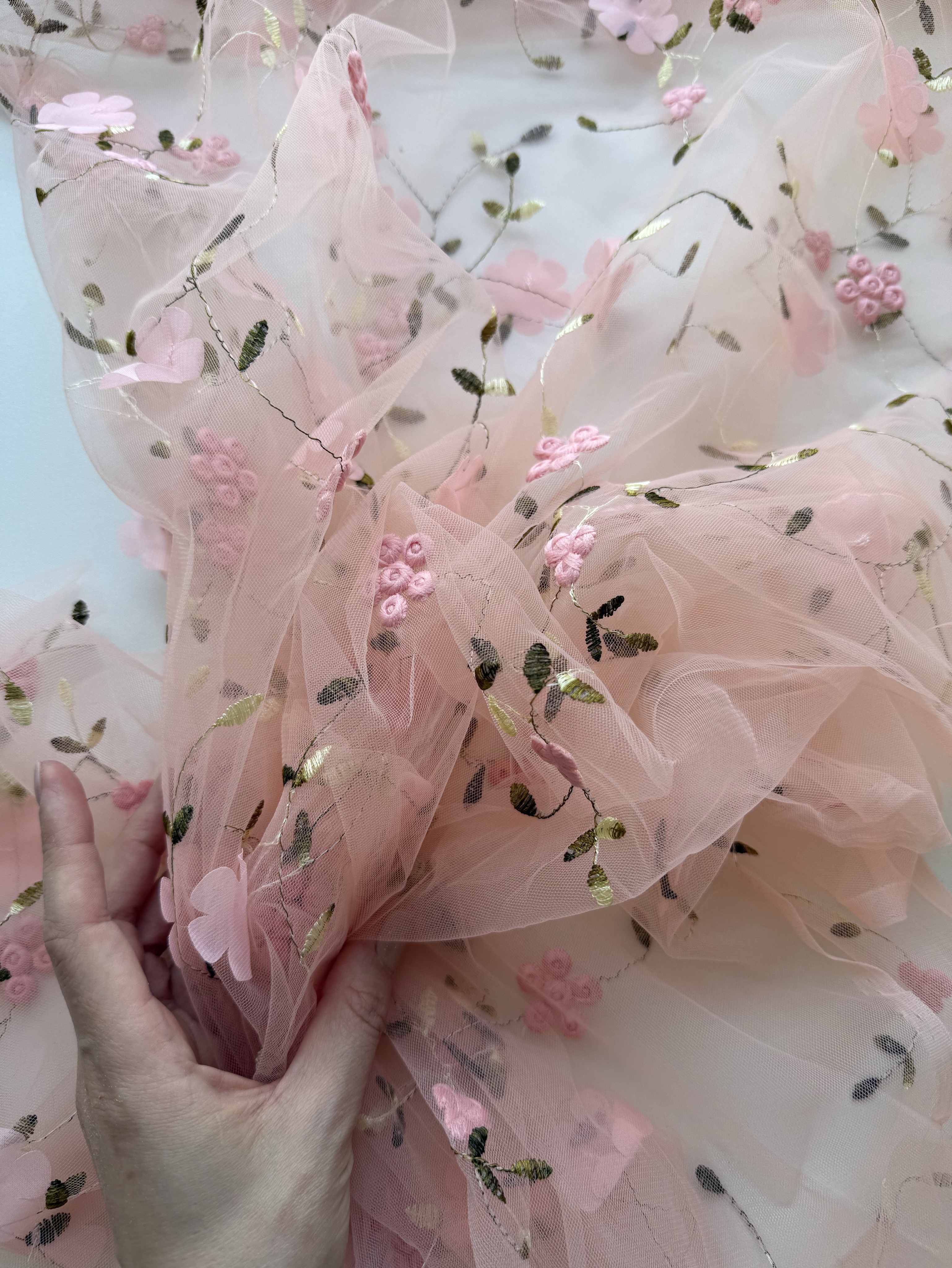 Фатин Розовые цветы на розово-персиковом фоне