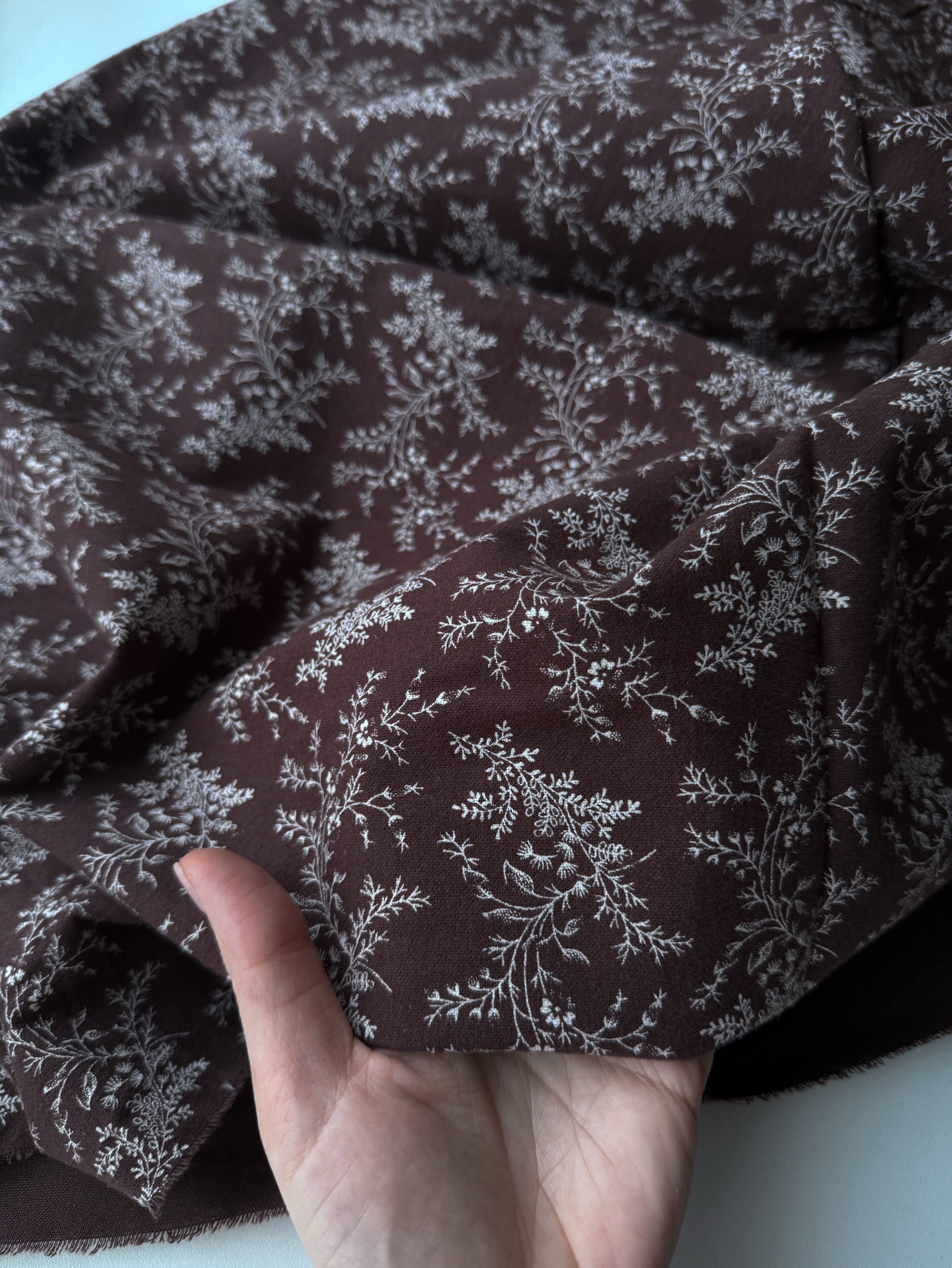 В меру плотная, мягкая, теплая ткань полотняного плетения. Ворс с лицевой стороны. Держит форму. Подойдёт для пошива взрослой и детской одежды, теплых пеленок.