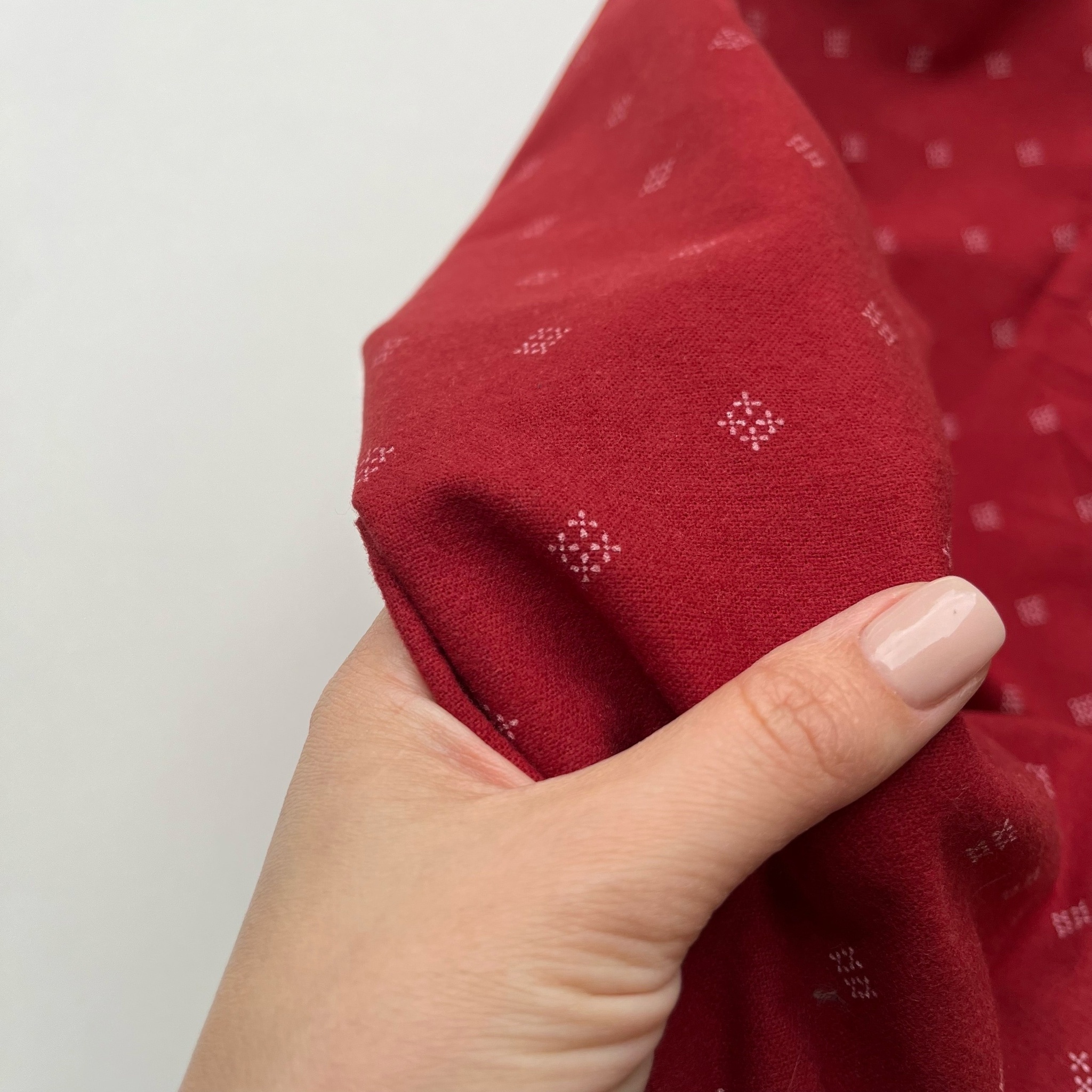 На такни возможны единичные небольшие вкрапления нитей другого цвета. Это не считается дефектом или браком для данного вида ткани. Ткани рвем строго по нити, если сложить отрез вдвое, то возможны отклонения от прямой до 5см. Это связано с фабричной намоткой ткани в рулон, после стирки отрез становится ровным.