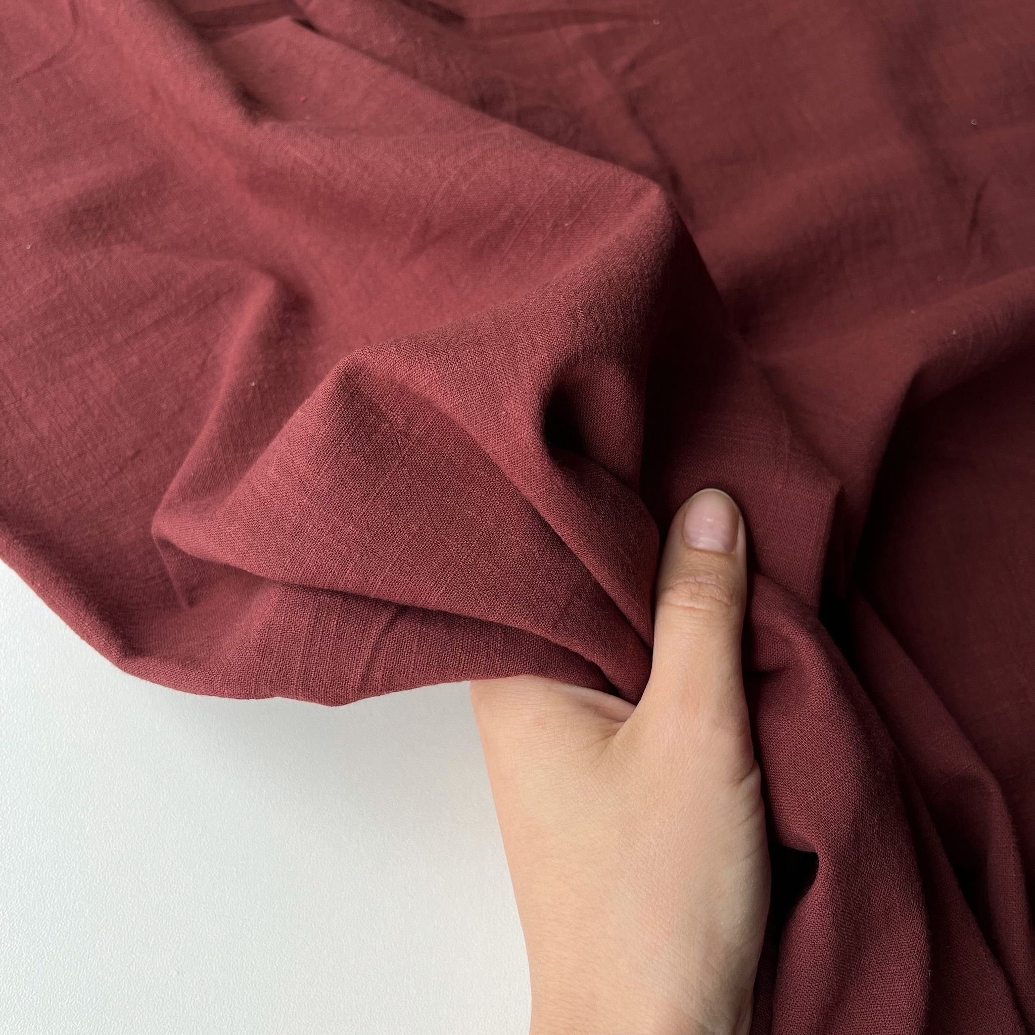 На такни возможны единичные небольшие вкрапления нитей другого цвета. Это не считается дефектом или браком для данного вида ткани. Ткани рвем строго по нити, если сложить отрез вдвое, то возможны отклонения от прямой до 5см. Это связано с фабричной намоткой ткани в рулон, после стирки отрез становится ровным.