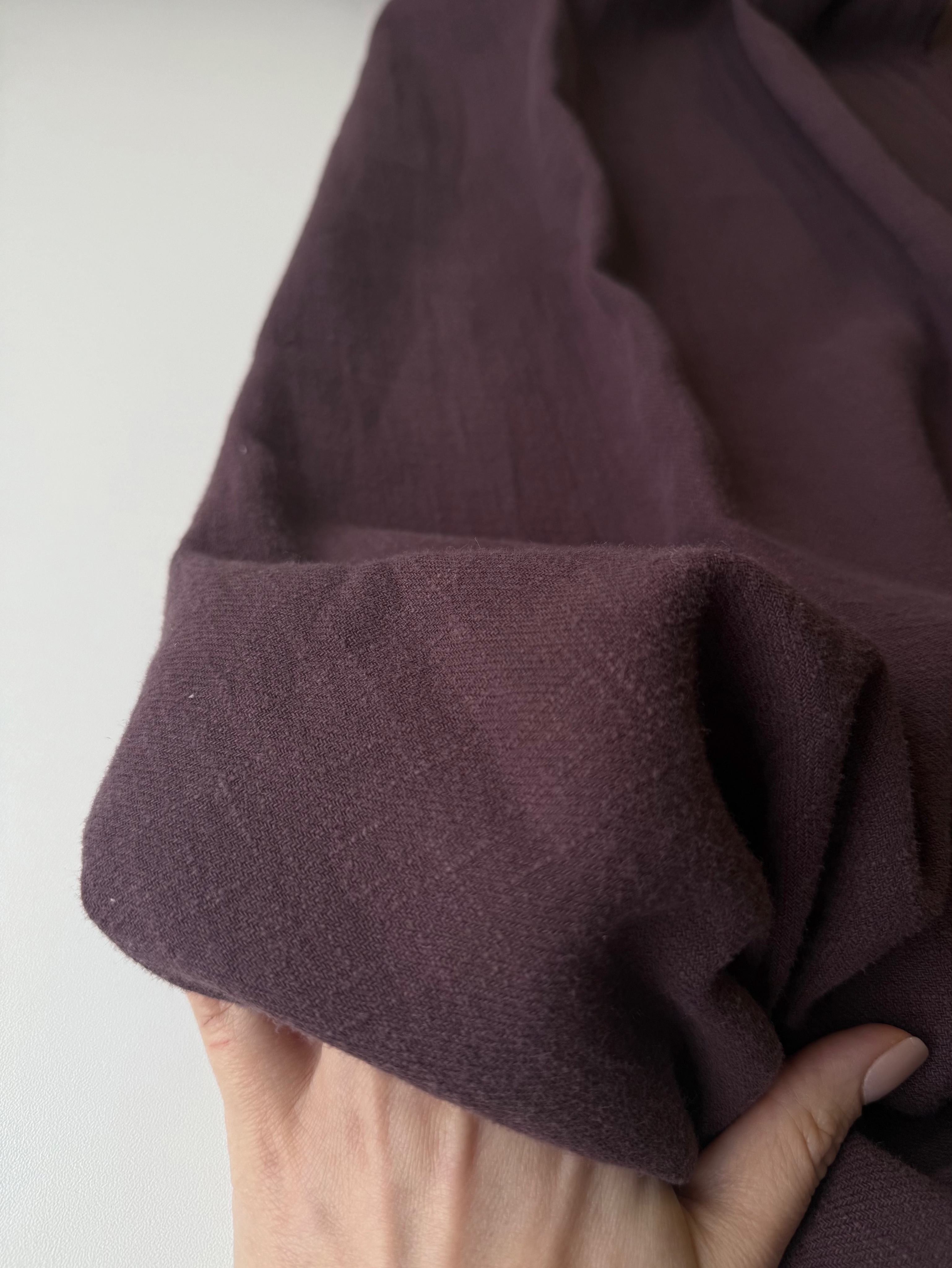 На такни возможны единичные небольшие вкрапления нитей другого цвета, узелки и утолщение нитей. Это не считается дефектом или браком для данного вида ткани. Ткани рвем строго по нити, если сложить отрез вдвое, то возможны отклонения от прямой до 5см. Это связано с фабричной намоткой ткани в рулон, после стирки отрез становится ровным.