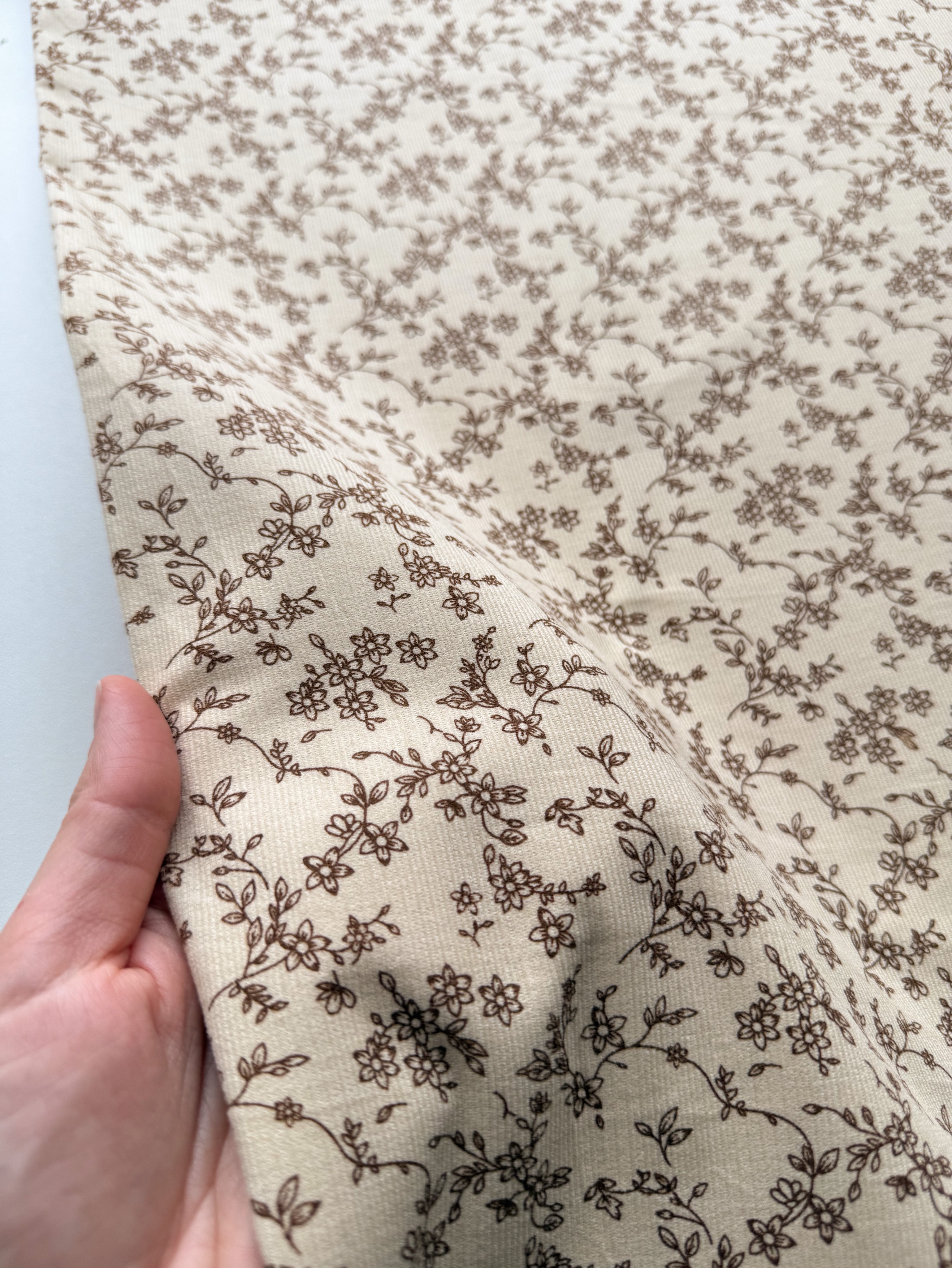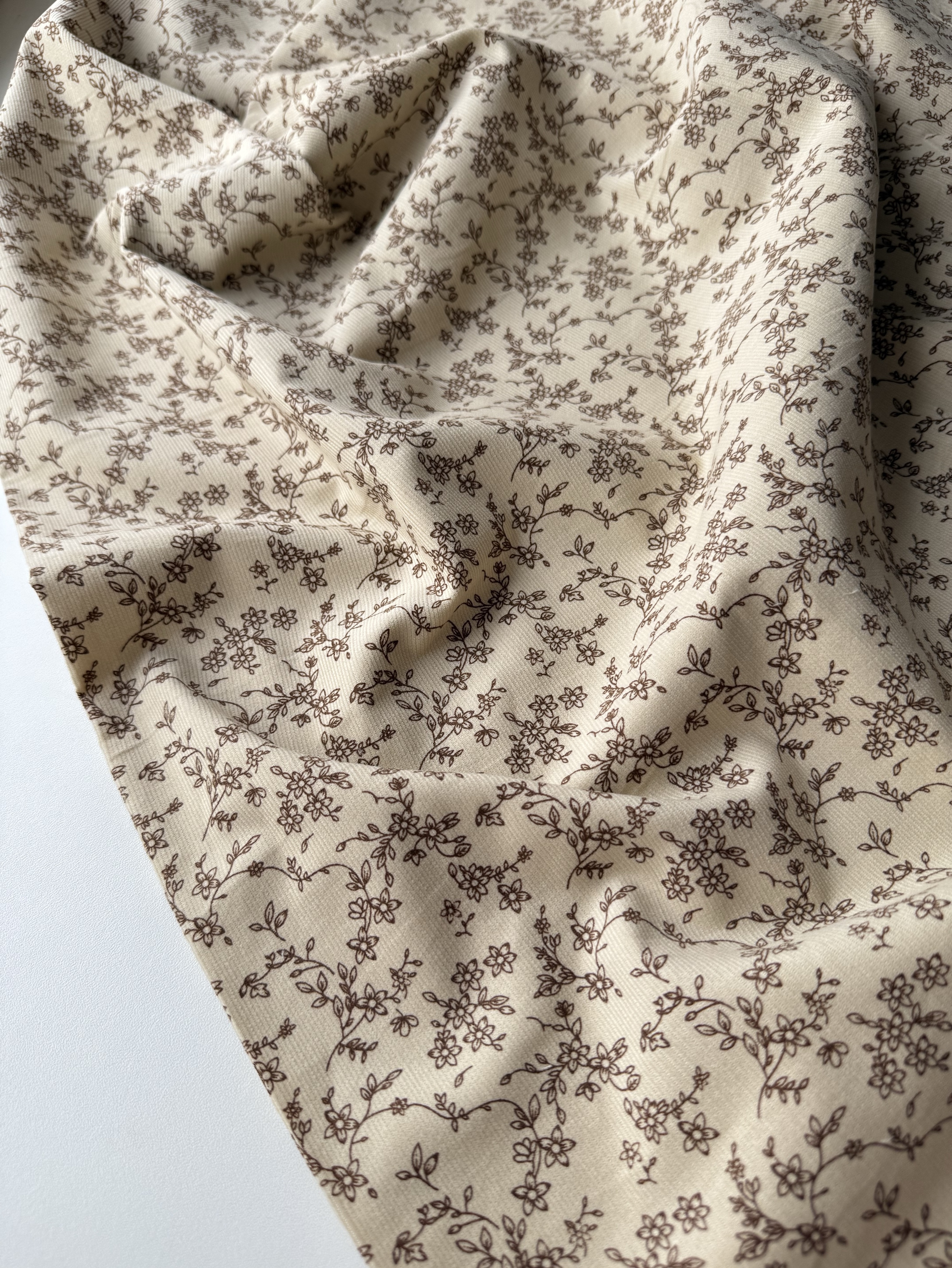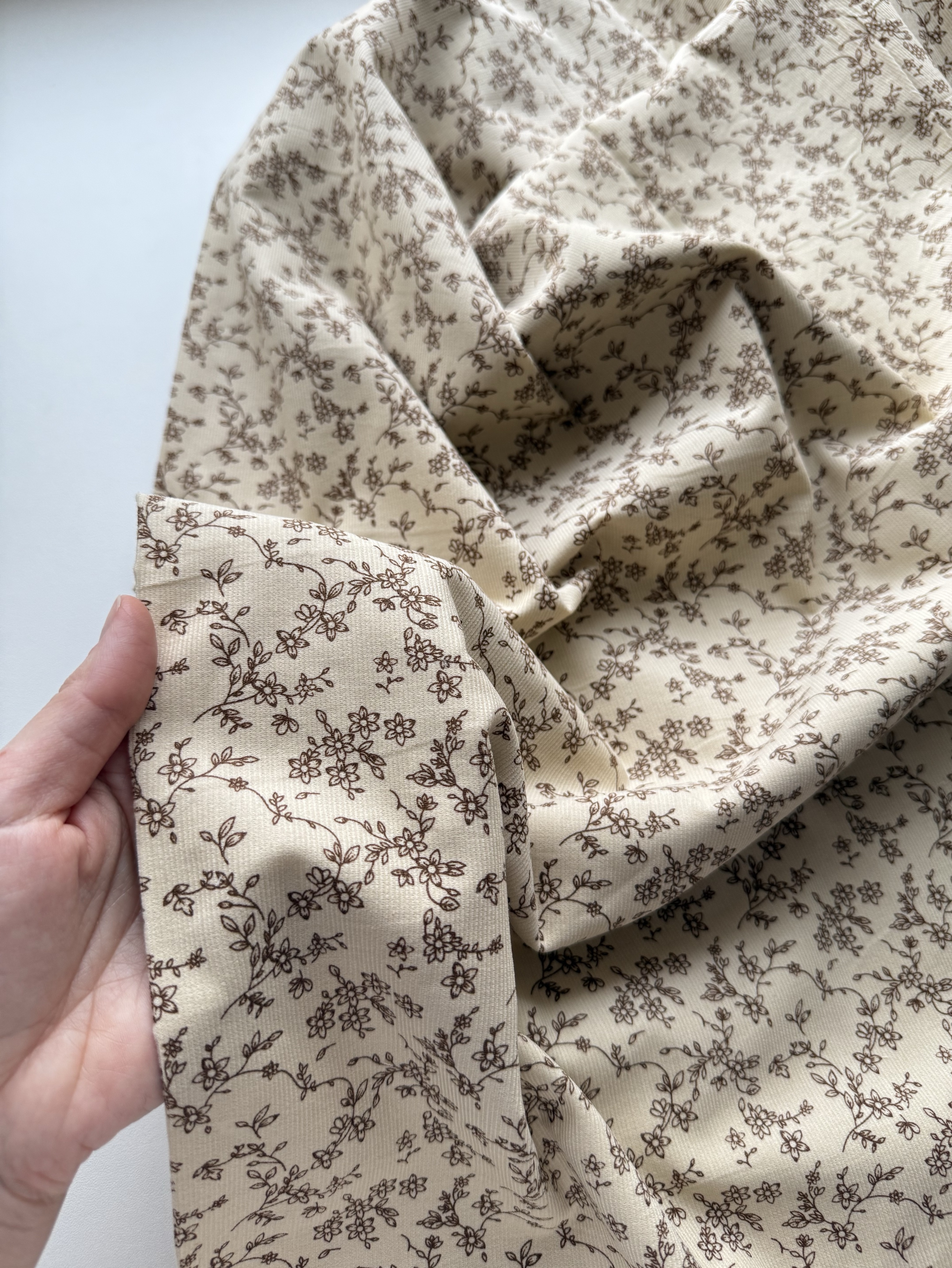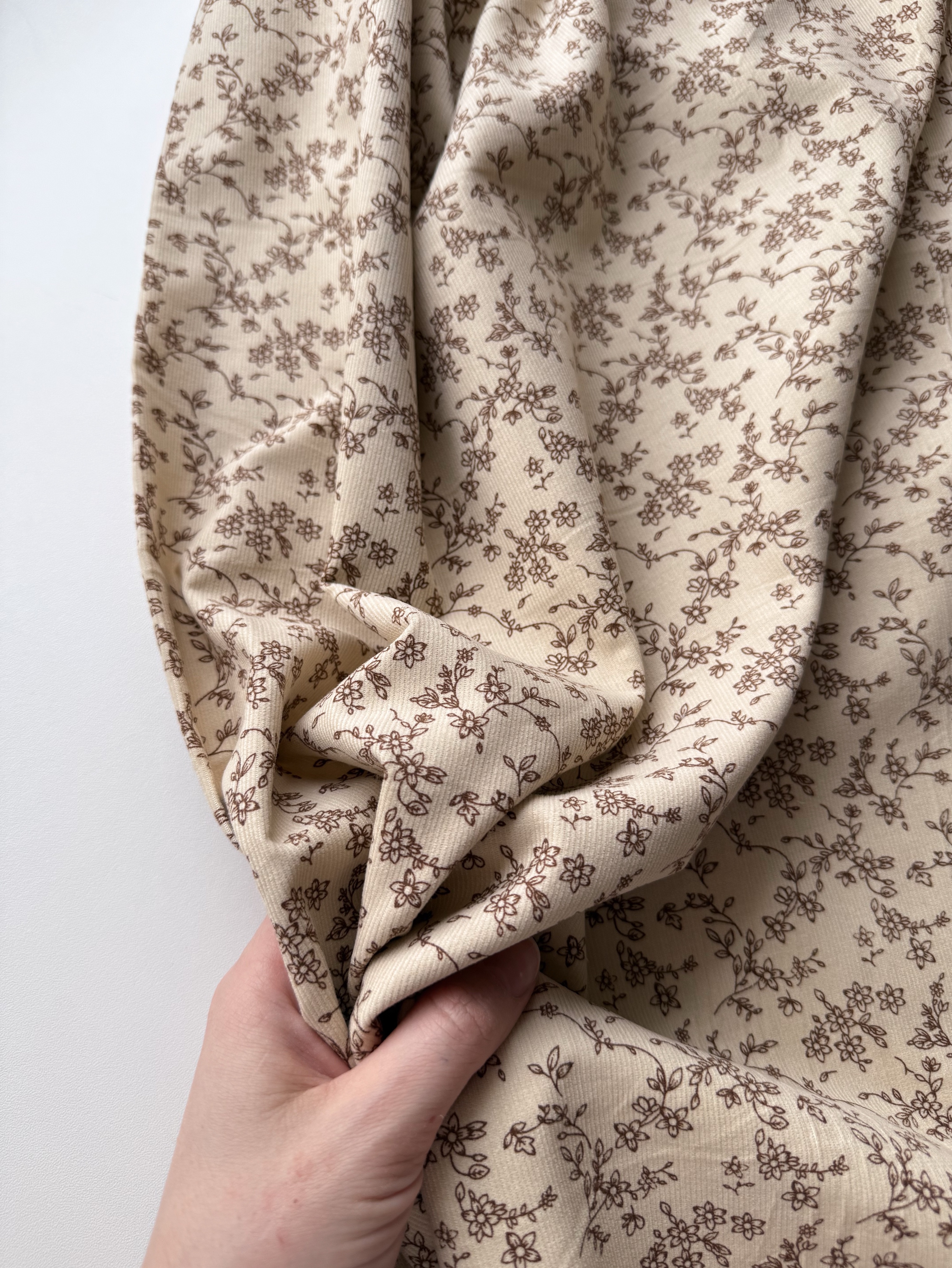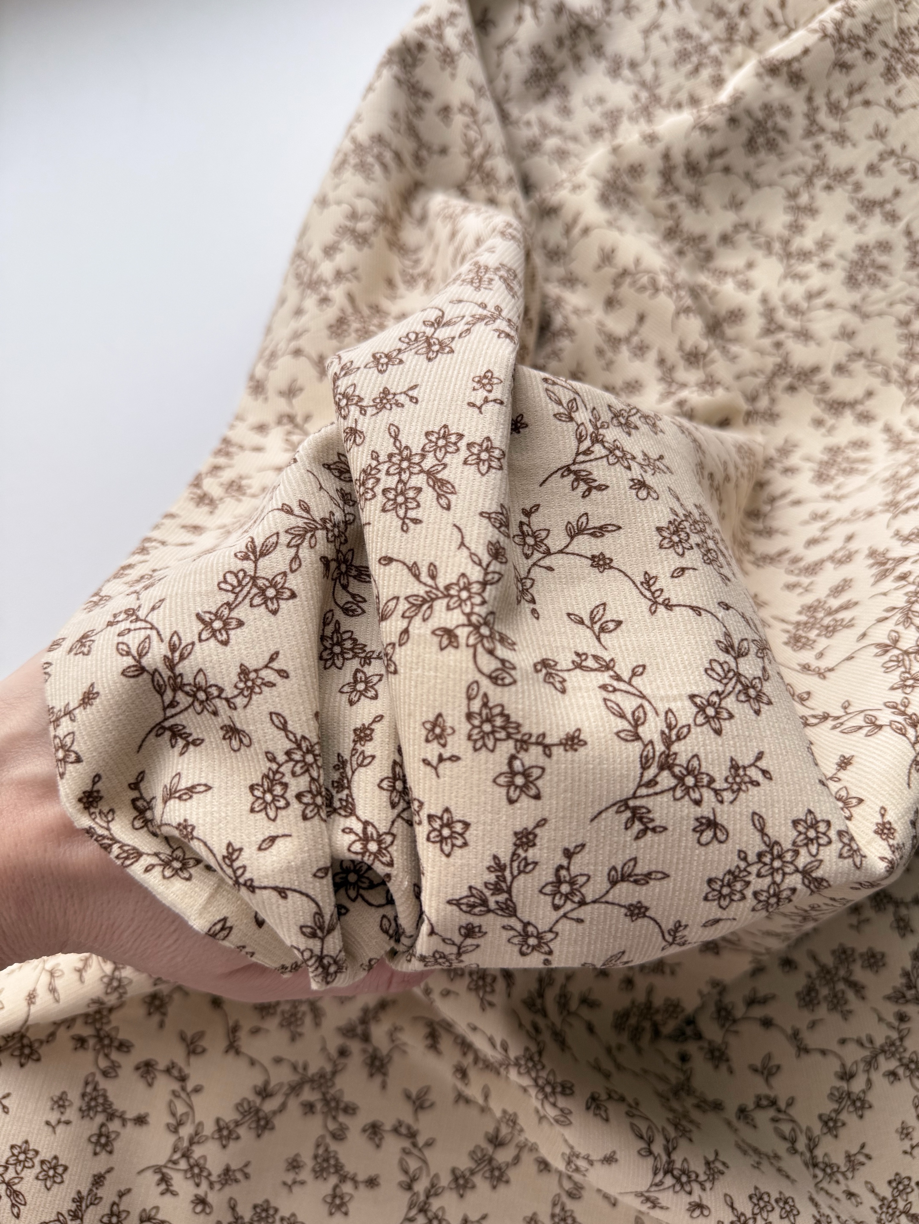 В меру плотная, мягкая, теплая ткань полотняного плетения. Ворс с лицевой стороны. Держит форму. Подойдёт для пошива взрослой и детской одежды.