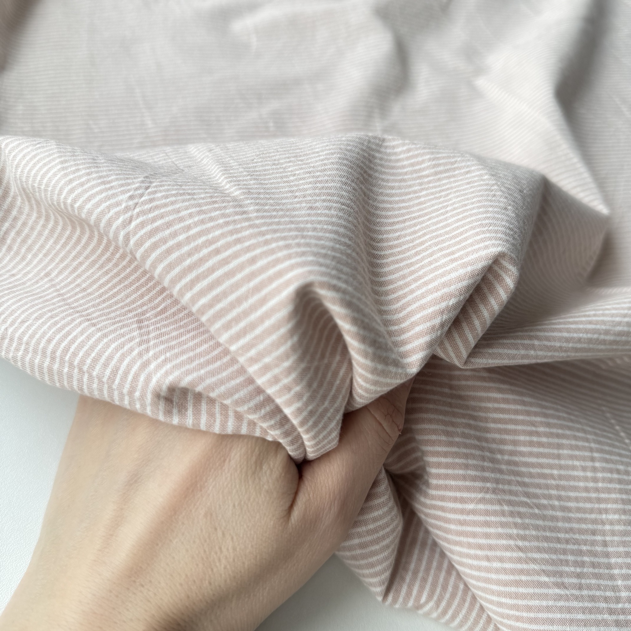 Вареный хлопок 250см. Мелкая полоска розовато-бежевая
