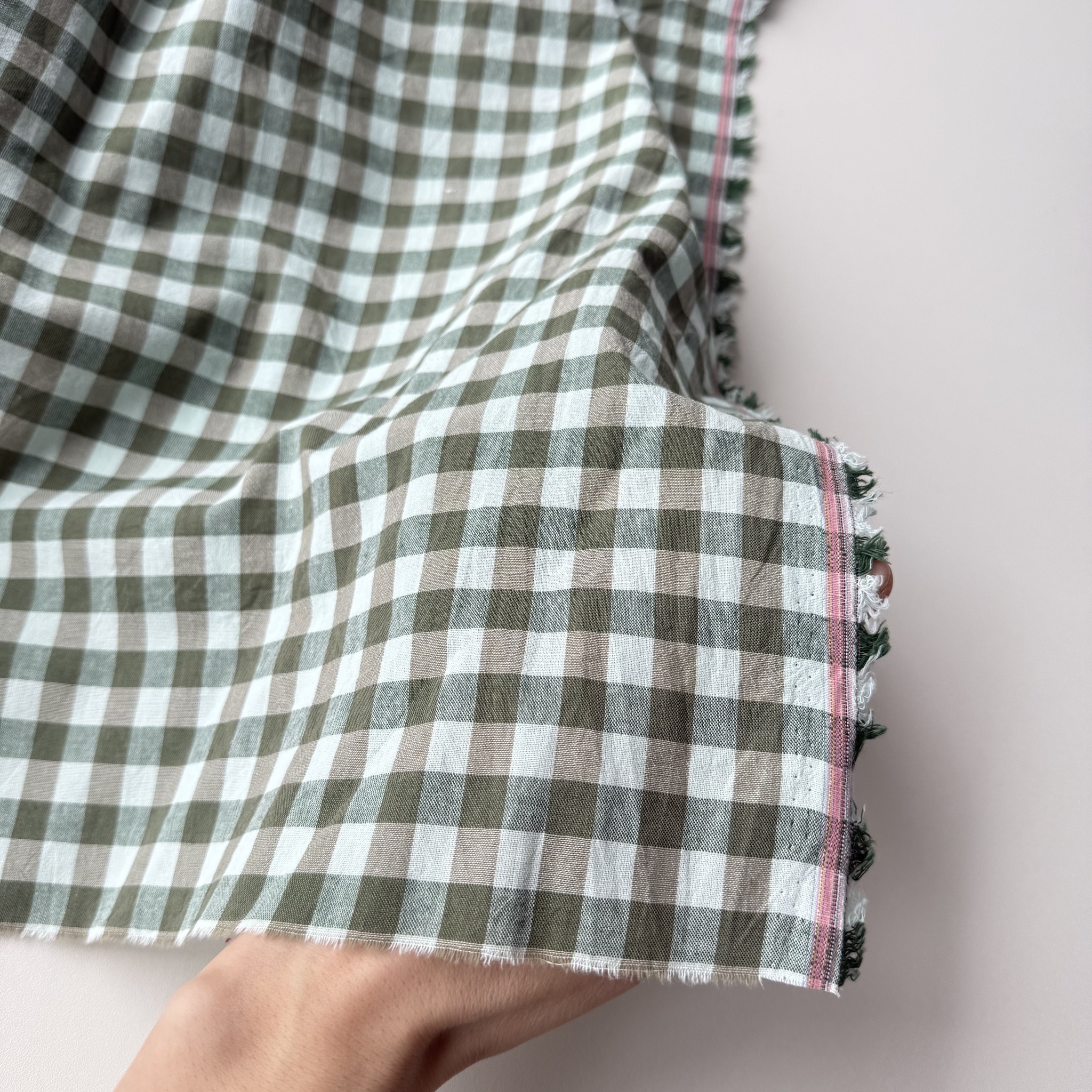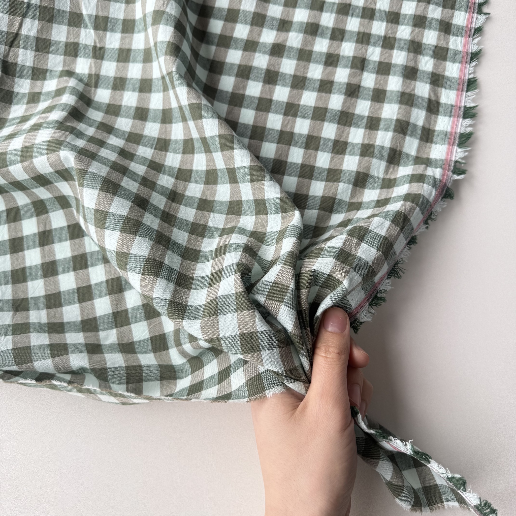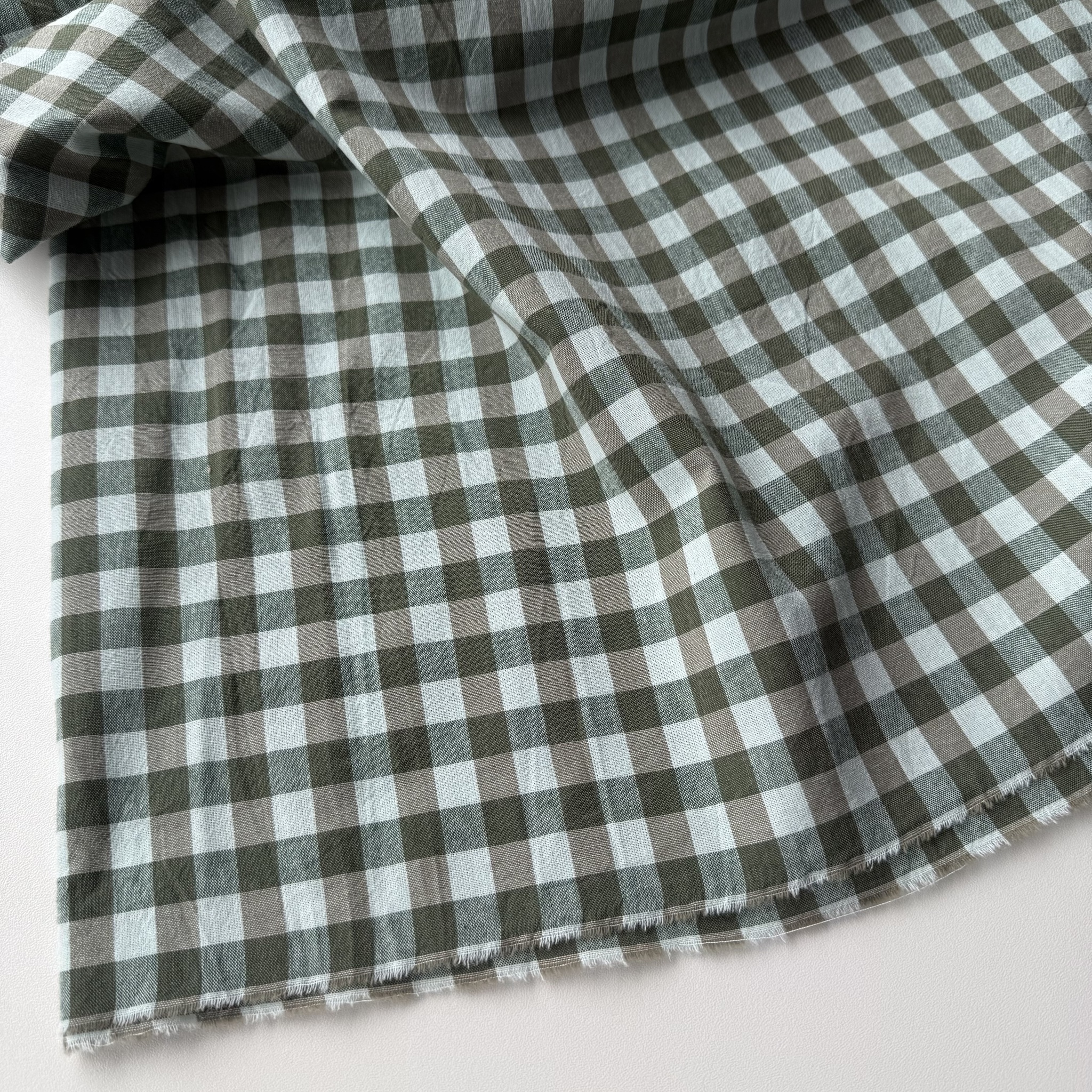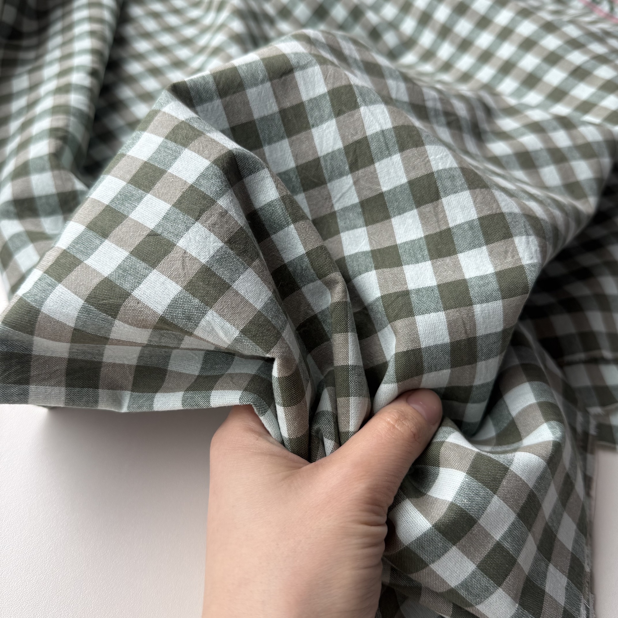 Вареный хлопок 250см. Бежево-зеленая клетка 1*1см