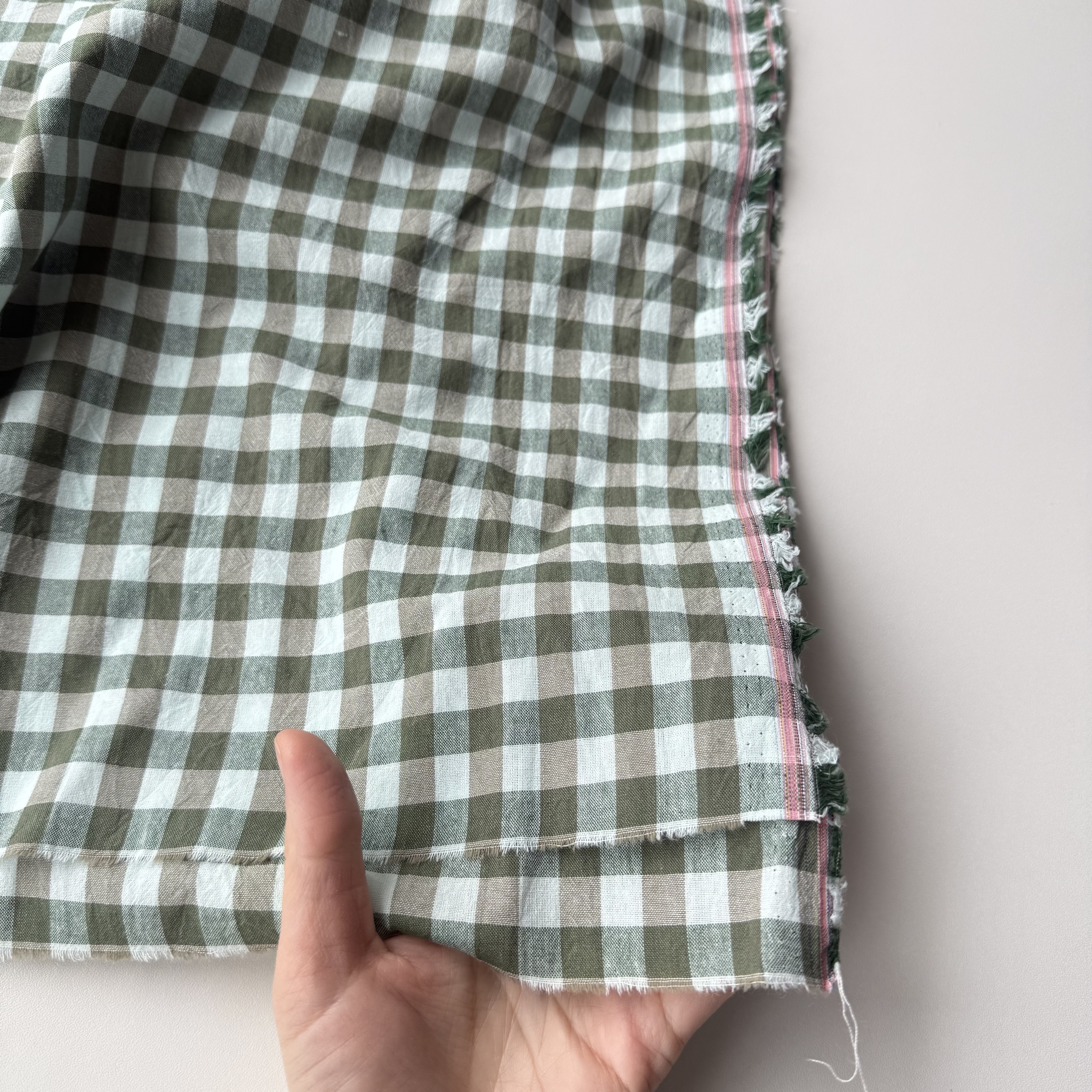 На такни возможны единичные небольшие вкрапления нитей другого цвета. Это не считается дефектом или браком для данного вида ткани. Ткани рвем строго по нити, если сложить отрез вдвое, то возможны отклонения от прямой до 5см. Это связано с фабричной намоткой ткани в рулон, после стирки отрез становится ровным.